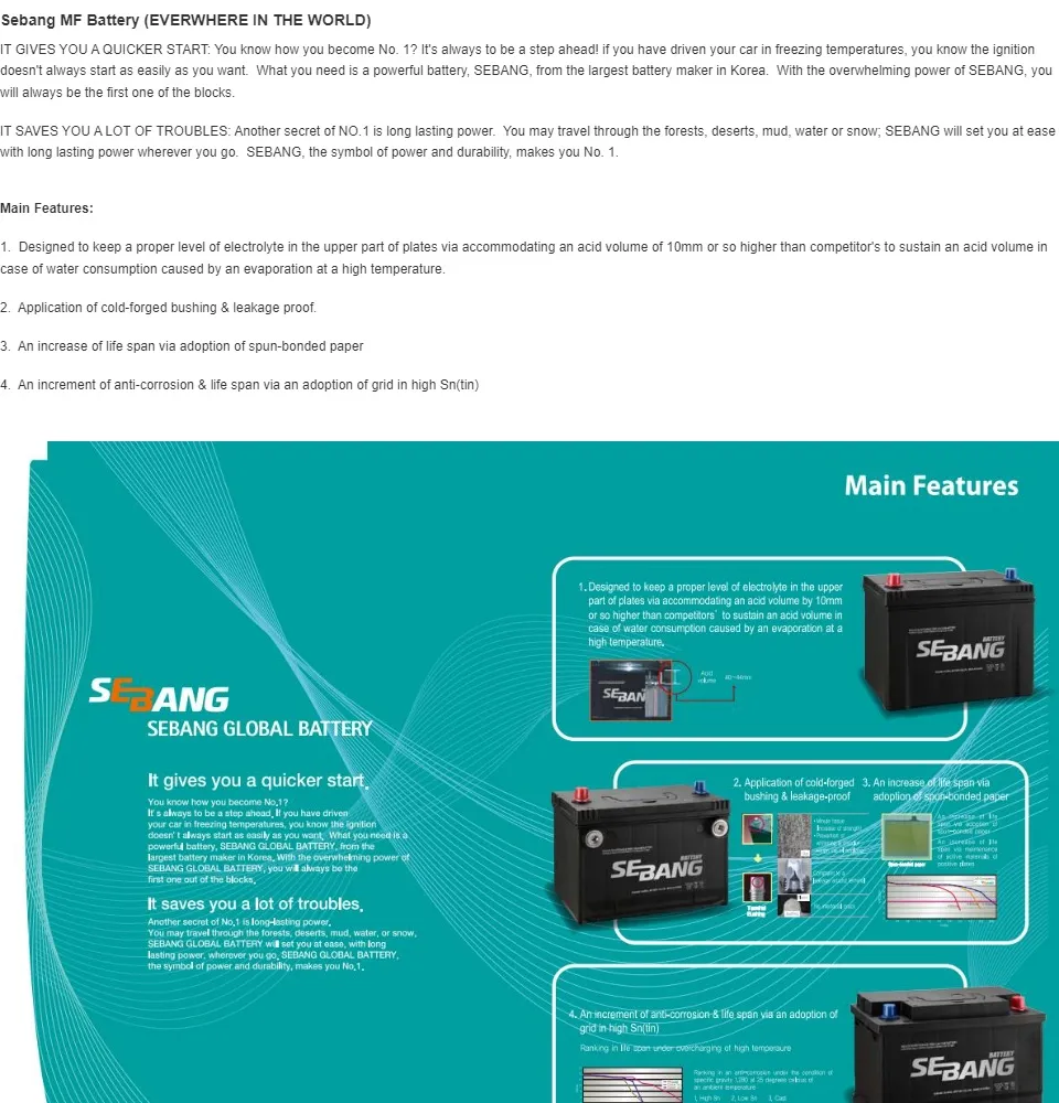 The Sebang 1SNF NS60ZL M55B24L 汽车电池经过精心设计,以确保可靠性和性能。